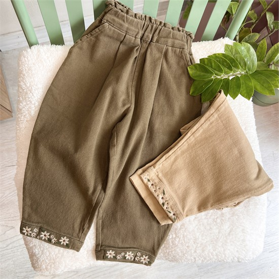راهنمای شلوار مام فیت جین کرم پاچه گلدار