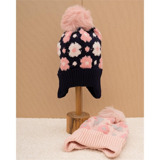 کلاه بافت طرح گل گلی